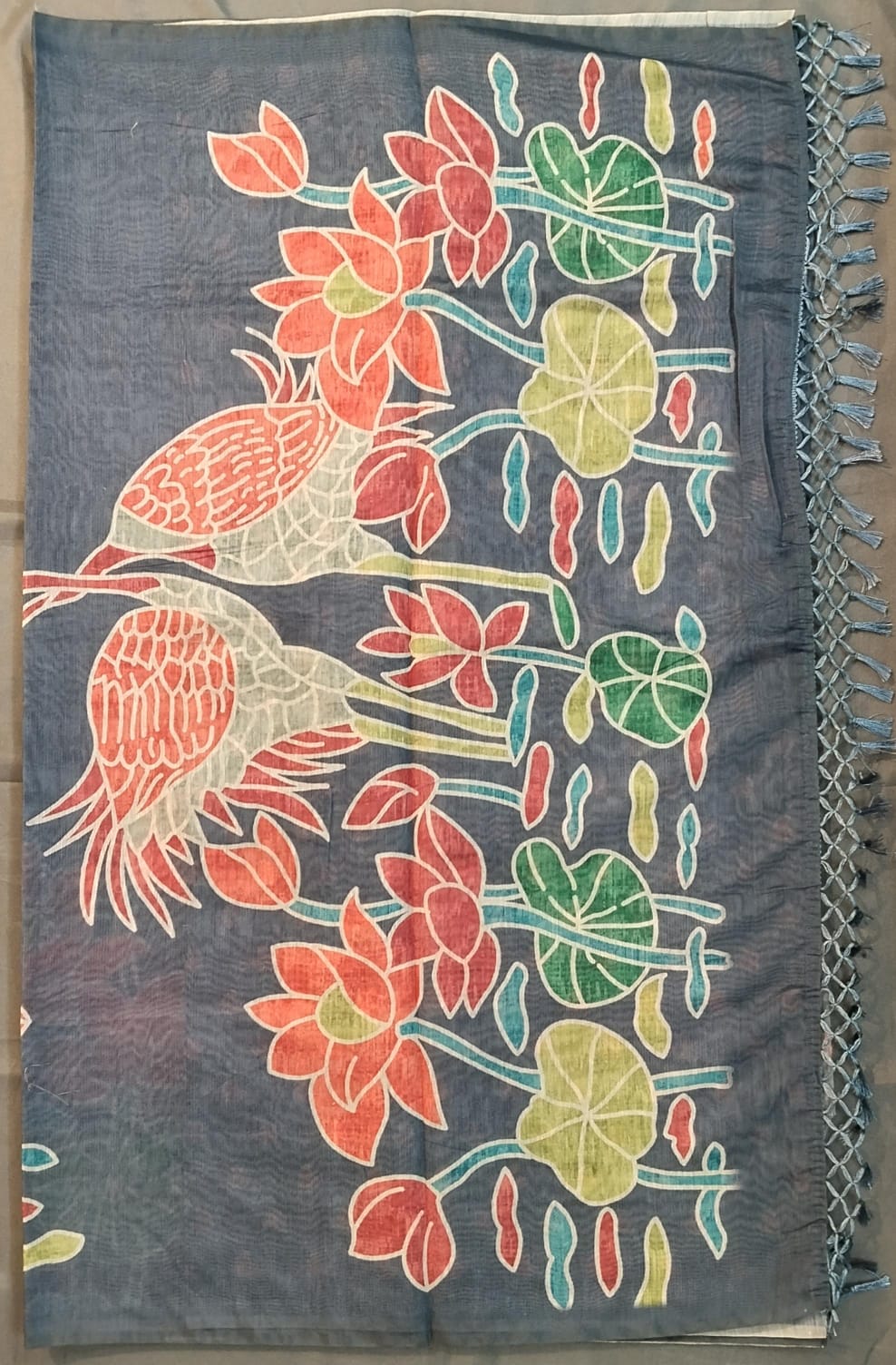 Ash Cotton Saree with Lotus Paint Design