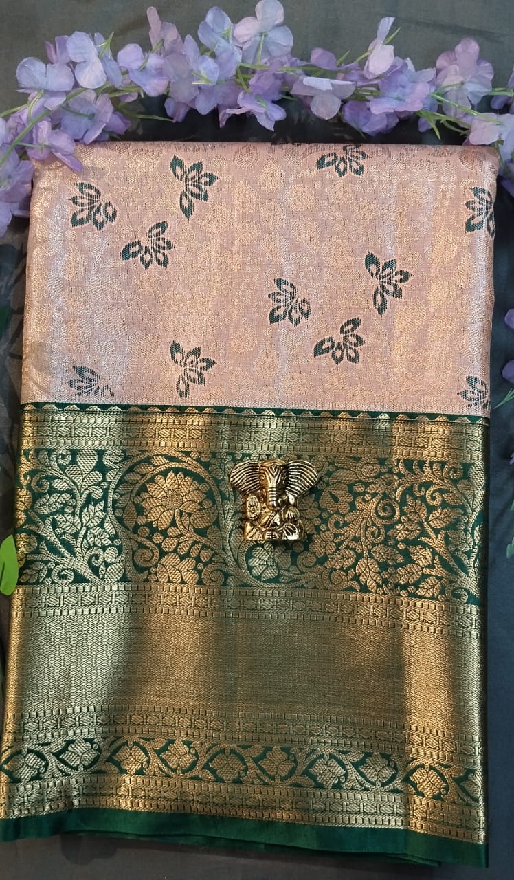 Opposite border Kanchi design all over the saree with rich pallu and 1 meter contrast blouse